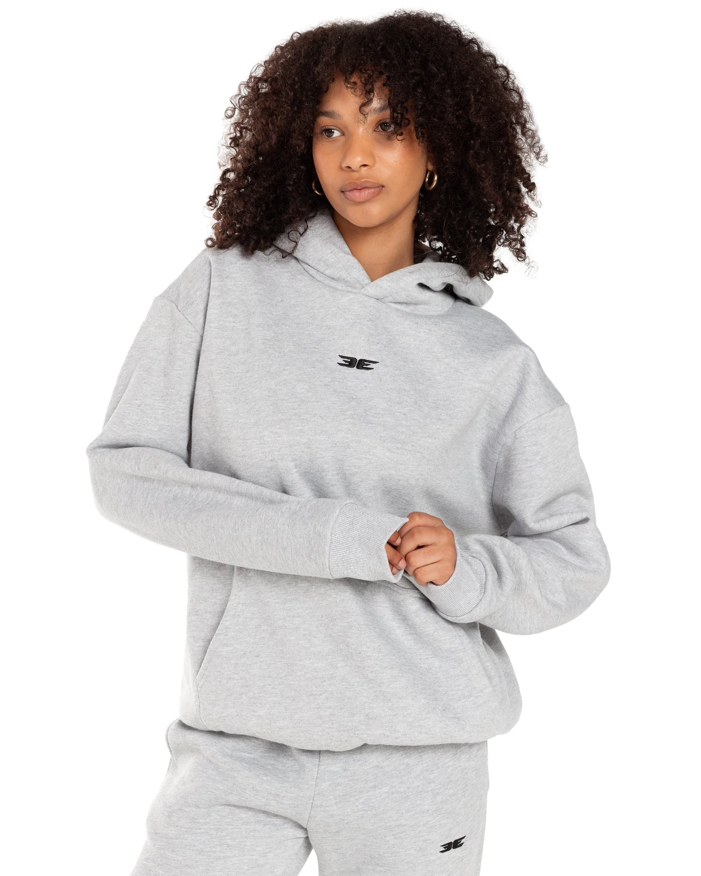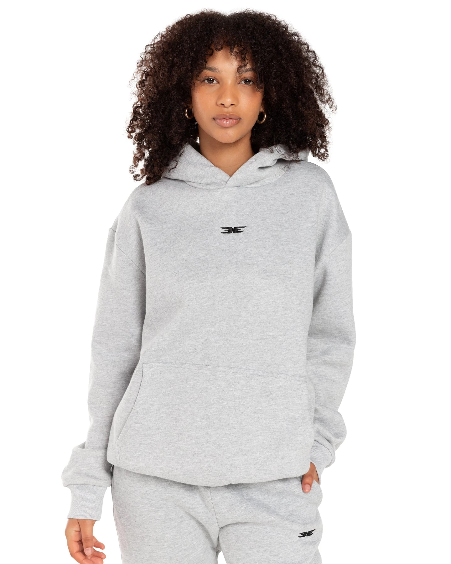 Sizing for this product is a baggy and oversized fit. The female model is 5’7 and wearing a size small, her usual size in EE. The male model is 5’8 and wearing a size M, his usual size in EE. For the full size guide, please see the link above.